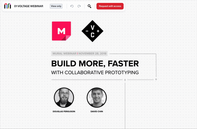 In this webinar, human-centered technologist Douglas Ferguson (President, Voltage Control) unpacked a collaborative prototyping process that brings teams together to build more, faster - and supports everyone contributing in an efficient and productive manner. Rather than using a traditional presentation deck, we facilitated this webinar entirely from a custom mural I built and tailored for storytelling, functionality, and engagement. We displayed my screen to the audience and I navigated the mural in realtime while hosting the conversation.