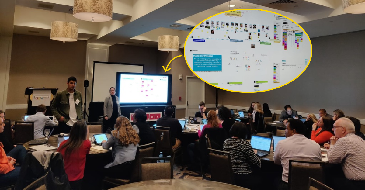 Boston's Service Design Week brought together a diverse community of business leaders, public sector, academic, and design practitioners to discuss the value, practice, and effectiveness of service design. With many of the attendees from globally distributed companies, Mural was brought in to share our expertise on how to facilitate service design remotely and scale the practice across a large organization. I co-facilitated a workshop for a room full of Fortune500 executives and business leaders, guiding them through best practices for digital service design using a service blueprint template they could bring back to champion within their own teams.